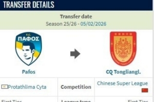 在重慶銅梁龍官宣塞浦路斯球隊(duì)帕福斯邊鋒迪馬塔租借加盟后,德轉(zhuǎn)網(wǎng)站顯示他的租借費(fèi)為250萬(wàn)歐。