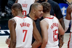 這兩場不倫不類申京阿門全廢,場上各自功能得趕緊調(diào),申京13+9+3/7+9+5,阿門11+4+4/8+5+7,這說明系統(tǒng)性出問題了,靠杜蘭特一個人狂掄能掄贏誰啊?