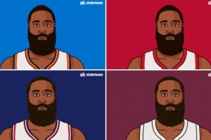 體育資訊2月7日訊 美國數(shù)據(jù)媒體StatMuse列出了哈登在各支球隊(duì)首秀的數(shù)據(jù):