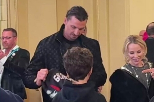 伊布在米蘭冬奧會(huì)開(kāi)幕式當(dāng)天與高布倫見(jiàn)面,向這位知名演員贈(zèng)送了一件定制的米蘭球衣,這件球衣背面印有高布倫的名字和26號(hào),這份禮物讓高布倫驚喜不已,他對(duì)伊布表示感謝。
