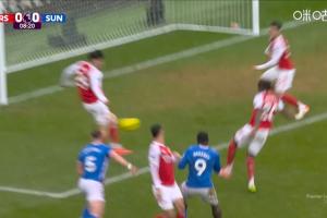 體育資訊02月07日訊 英超第25輪,阿森納vs桑德蘭。比賽第8分鐘,拉亞禁區(qū)內(nèi)脫手造成險情,哈弗茨回防救空門!