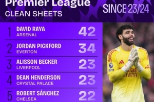 體育資訊2月8日訊 阿森納在本輪英超3-0完勝桑德蘭,數(shù)據(jù)統(tǒng)計(jì)顯示,拉亞是近3個(gè)賽季零封次數(shù)最多的英超門將。