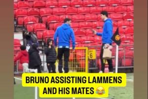 體育資訊02月08日訊 英超第25輪,曼聯(lián)2-0戰(zhàn)勝熱刺,本場(chǎng)比賽B費(fèi)打入一球。賽后,拉門斯找到B費(fèi),讓他幫自己和朋友拍照。