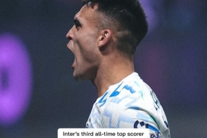 數(shù)據(jù)統(tǒng)計顯示,勞塔羅已經(jīng)為國米各項賽事打進171球,躋身隊史射手榜第三位。