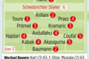 體育資訊2月9日訊 德甲第21輪比賽,拜仁主場(chǎng)5-1擊敗霍芬海姆,德國(guó)媒體《圖片報(bào)》對(duì)兩隊(duì)球員進(jìn)行了評(píng)分。