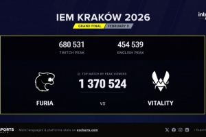 體育資訊2月9日訊 根據Esports Charts網站的數據統(tǒng)計,IEM克拉科夫的最高收視人數為137萬人,發(fā)生在Vitality對陣FURIA的總決賽中。這一數據超越了2025年的IEM卡托維茲(129萬人)成為歷史上收視率最高的非Major賽事,同時在歷史收視率總榜中也能排名第8位!