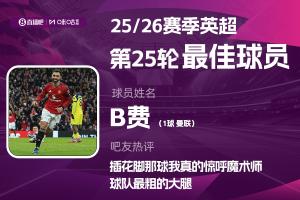 2025-2026賽季英超火熱進(jìn)行中,體育資訊和咪咕體育聯(lián)合發(fā)起每輪英超最佳球員評(píng)選活動(dòng)!第25輪評(píng)選結(jié)果已經(jīng)出爐,曼聯(lián)中場(chǎng)B費(fèi)當(dāng)選!曼聯(lián)球員連續(xù)5輪斬獲此獎(jiǎng)項(xiàng),此前4輪分別是舍什科、B費(fèi)、庫(kù)尼亞、卡塞米羅。