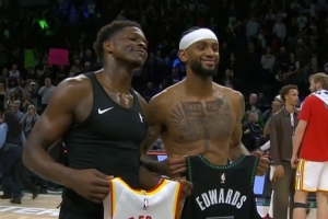 此役森林狼球星愛德華茲高效發(fā)揮,出場38分鐘21投11中,三分11中4、罰球5中4拿到30分6籃板6助攻2搶斷1蓋帽,有4失誤,正負值+22。