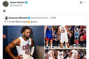 賽后,米切爾發(fā)推寫道:“西部客場之旅4勝1負?!惫寝D(zhuǎn)發(fā)了這條動態(tài),并配上了一個???的表情。