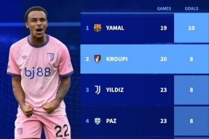 體育資訊2月10日訊 《轉會市場》統(tǒng)計了本賽季五大聯(lián)賽U21球員進球情況,18歲的亞馬爾居首。