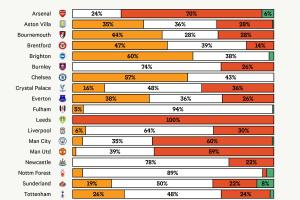 兩家曼徹斯特俱樂部則呈現(xiàn)出相似的支出特征,將大約60%的轉會費用于25至28歲的球員。