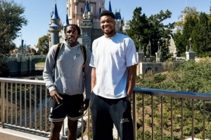 體育資訊2月11日訊 雄鹿官方曬圖,字母哥和托里恩·普林斯在奧蘭多迪士尼游玩。