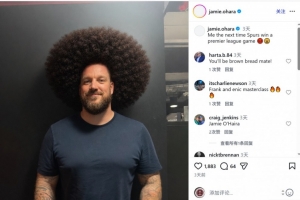 前熱刺中場(chǎng)、評(píng)論員奧哈拉三天前曾在社交媒體上曬出圖片,內(nèi)容為自己變成爆炸頭(蓄發(fā)哥梗),配文:“熱刺下次贏得英超比賽時(shí)的我?!?/p>