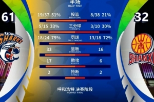 體育資訊2月12日訊 CBA俱樂部杯決賽,上海半場61-32領先山西。