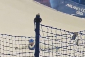 體育資訊2月13日訊 在大跳臺訓(xùn)練的第二日,谷愛凌最后一跳時不慎摔倒。