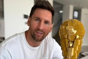 體育資訊02月14日訊 梅西今日更新社媒,曬出國際足聯(lián)與樂高集團(tuán)合作推出的樂高版大力神杯。