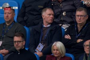 體育資訊02月14日訊 曼城vs索爾福德城第18分鐘,鏡頭給到看臺,索爾福德城股東斯科爾斯在現(xiàn)場觀戰(zhàn)。