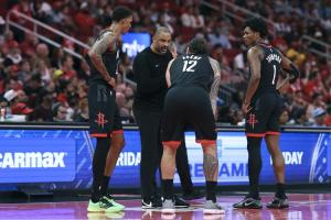 小賈巴里·史密斯?fàn)顟B(tài)奇差,整個第四節(jié)8投0中!饒是如此,火箭主教練烏度卡末節(jié)還是給了小賈巴里·史密斯10分鐘的出場時間(注:伊森傷退)。