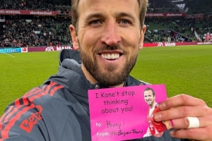 時(shí)值情人節(jié),拜仁官推也曬出了凱恩手持愛心卡片的互動(dòng)照,凱恩手持著一張印有表白的卡片:“拜仁球迷致凱恩:我們無(wú)法停止想念你!”其中,can還借用了凱恩Kane名字的諧音。