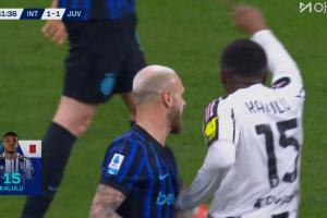 體育資訊02月15日訊 尤文vs國米第42分鐘,米雷蒂草率一傳被斷,卡盧盧染黃!兩黃變一紅被罰下,尤文十人作戰(zhàn)!