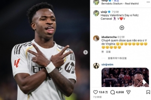 賽后維尼修斯更新社媒,曬出自己慶祝動(dòng)作并配文寫道:“情人節(jié)快樂,盡情狂歡吧!”