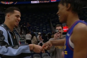 此役,前掘金球員小波特現場觀戰(zhàn)了這場比賽。