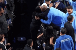 ESPN洛杉磯分部官方Instagram曬出一段現(xiàn)場花絮,賽前美國星條隊球星詹姆斯在場邊深情擁抱了自己的母親格洛麗亞。