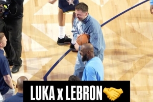 ESPN洛杉磯分部官方Instagram曬出一段比賽期間的花絮:湖人隊(duì)友詹姆斯和東契奇在場(chǎng)邊閑聊,詹姆斯還笑著推了東契奇一把。