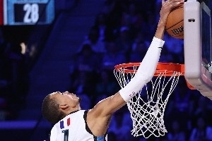 文班亞馬發(fā)誓要讓全明星賽更具競爭力,并用他的表現(xiàn)兌現(xiàn)了諾言,在周日新賽制的開局階段,他包辦了世界隊(duì)對陣美國新星隊(duì)的前7分。