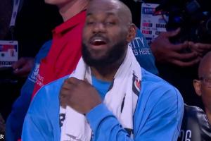 GIF-詹姆斯對(duì)鏡頭笑罵“法克文班(Fxxx Wemby)”