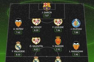 中場:巴爾韋德(皇馬)、瓦倫丁(巴列卡諾)、達德爾(馬略卡)、拉馬扎尼(瓦倫西亞)