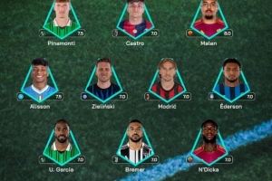 意甲第25輪最佳陣:奧代羅(克雷莫內(nèi)塞);烏利塞斯·加西亞(薩索洛)、布雷默(尤文)、恩迪卡(羅馬);阿利森·桑托斯(那不勒斯)、澤林斯基(國(guó)米)、莫德里奇(米蘭)、埃德森(亞特蘭大);皮納蒙蒂(薩索洛)、卡斯特羅(博洛尼亞)、馬倫(羅馬)