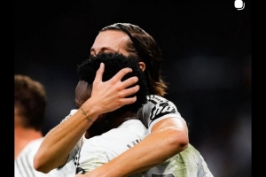 卡雷拉斯社媒曬出擁抱維尼修斯的照片,配文:“我們與你站在一起,兄弟?!?/p>