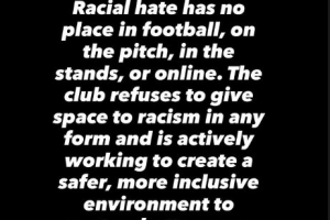 尤文官方也堅(jiān)定地站在了球員這一邊。俱樂部在社交媒體發(fā)布了如下聲明:“種族仇恨在足球場(chǎng)、看臺(tái)或網(wǎng)絡(luò)空間都沒有立足之地。俱樂部拒絕為任何形式的種族主義提供空間,并正致力于創(chuàng)造一個(gè)更安全、更包容的環(huán)境,為球迷和球員打造更好的體育事業(yè)。永不再犯?!?/p>