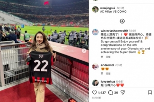 體育資訊2月19日訊 今日,花滑名將隋文靜在個人社媒曬出自己現(xiàn)身圣西羅球場,觀戰(zhàn)意甲第24輪AC米蘭vs科莫的比賽。她還拿著一件印有自己姓名的米蘭22號球衣。
