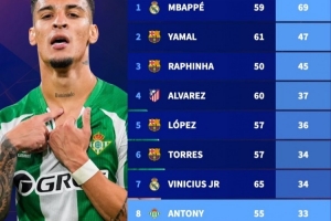 在曼聯(lián)經(jīng)歷低谷之后,安東尼在貝蒂斯重振了自己的職業(yè)生涯。本賽季到目前為止,他各項賽事代表貝蒂斯出戰(zhàn)29場比賽,打進10球送出9次助攻。