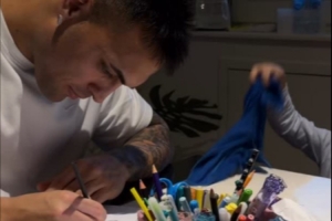 體育資訊2月20日訊 不久前,勞塔羅的妻子在社交媒體上曬出了勞塔羅與孩子畫(huà)畫(huà)的視頻。
