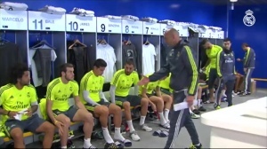 2016年1月5日,皇馬新帥齊達(dá)內(nèi)第一次進(jìn)入更衣室,與皇馬球員見面,皇馬眾將紛紛起立與齊達(dá)內(nèi)握手,C羅、貝爾、拉莫斯等大佬也向齊達(dá)內(nèi)微笑致意。