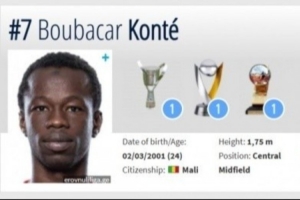 孔特出生于2001年,馬里籍,今年25歲,可以勝任前腰、邊前衛(wèi)、中前衛(wèi)等多個位置??滋仄鸩接诒睔W足球青訓(xùn)體系,曾在挪超薩普斯堡、丹麥超北西蘭俱樂部接受青訓(xùn),后曾在挪乙謝夫、葡甲馬德拉國民、挪超費(fèi)德列斯達(dá)俱樂部效力。2024年1月,孔特轉(zhuǎn)會至格魯吉亞哥里迪拉俱樂部并效力至今,累計為球隊出戰(zhàn)各項賽事81場,貢獻(xiàn)14粒進(jìn)球和8次助攻,并隨隊獲得過格魯吉亞杯、格魯吉亞超級杯冠軍。國家隊層面,孔特曾代表馬里U20國家隊獲得2019年U20非洲杯冠軍,當(dāng)屆賽事出場4次;同時在當(dāng)年的U20世界杯上為馬里出場5次,打進(jìn)2球。