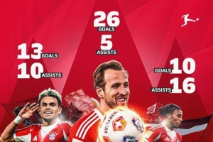 體育資訊2月20日訊 德甲官方更新社媒動(dòng)態(tài),曬出拜仁鋒線三叉戟本賽季的聯(lián)賽數(shù)據(jù),配文:“拜仁擁有世界最佳鋒線三人組嗎?”