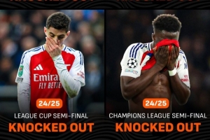 據(jù)Live Score統(tǒng)計(jì),阿森納各項(xiàng)賽事近4次半決賽皆出局,這是該俱樂部歷史上最長的半決賽連續(xù)出局紀(jì)錄。