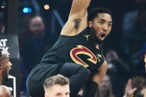 騎士球星米切爾上半場頻繁沖殺內線砍分,他出戰(zhàn)15分半鐘,9投3中(三分3中1)、罰球9中8,砍下15分1助攻2搶斷,有2次失誤,正負值-3。