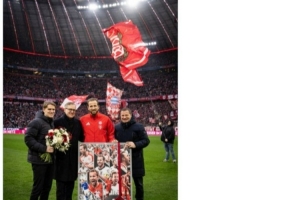拜仁官推也曬出凱恩與球隊高層的合照,配文寫道:“祝賀凱恩達成生涯500粒進球里程碑,拜仁大家庭永遠愛你!”