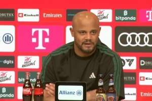 體育資訊2月22日訊 拜仁在本輪德甲焦點(diǎn)戰(zhàn)3-2險(xiǎn)勝法蘭克福,主帥孔帕尼在賽后接受采訪談及相關(guān)話題。