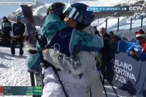 體育資訊02月22日訊 米蘭冬奧會自由式滑雪女子U型場地技巧決賽第2輪,中國選手李方慧第二滑91.50分位列第二,僅次于谷愛凌。李方慧完成第二滑后,與場邊的谷愛凌擁抱。