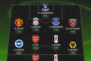 體育資訊2月24日訊 英超第27輪比賽已經(jīng)結(jié)束全部爭奪,WhoScored評(píng)選出了本輪比賽最佳陣,約克雷斯、埃澤入選,達(dá)洛特、科納特在列。