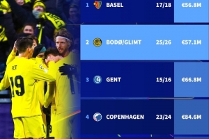 德國轉(zhuǎn)會(huì)市場(chǎng)盤點(diǎn)了近10個(gè)賽季闖進(jìn)歐冠16強(qiáng)身價(jià)最低球隊(duì)排行,博德閃耀第二低,僅高于2017-18賽季的巴塞爾。