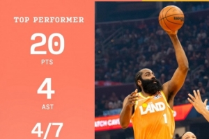 賽后,騎士官方發(fā)布哈登個人數(shù)據(jù)海報。