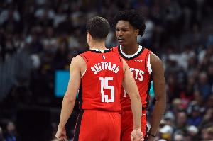 火箭此前首發(fā)陣容是:杜蘭特、小賈巴里·史密斯、申京、伊森、阿門。
