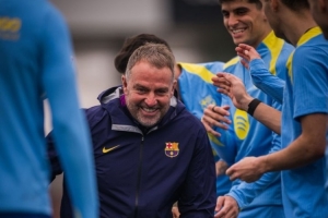 體育資訊2月25日訊 2月24日是巴薩主帥弗里克61歲生日,巴薩官方社媒發(fā)布圖片,球員列隊(duì)為主教練慶祝。